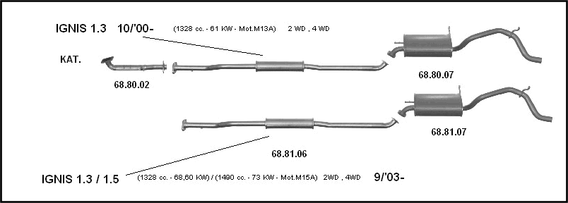 Prednji i zadnji lonac prodaju se sa svojim pripadajućim cevima, onako kako je i prikazano u katalogu.